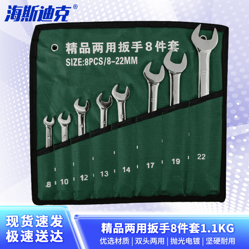 海斯迪克 镜面扳手套装 gny-13 高碳钢 抛光电镀 两用扳手 8件 1套
