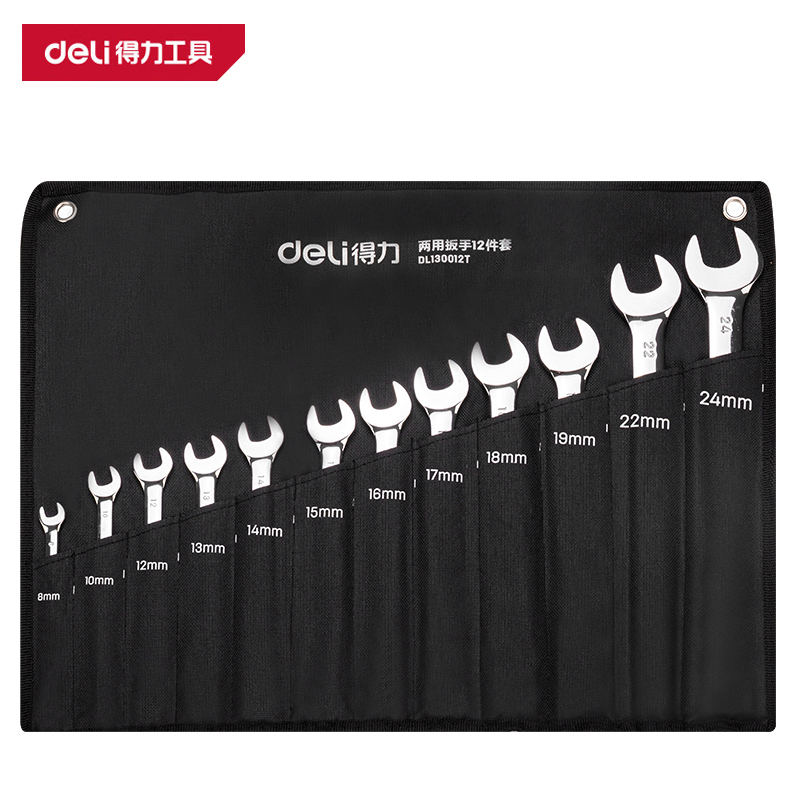 得力 镜面两用扳手套装 DL130012T 银色 12件 1套