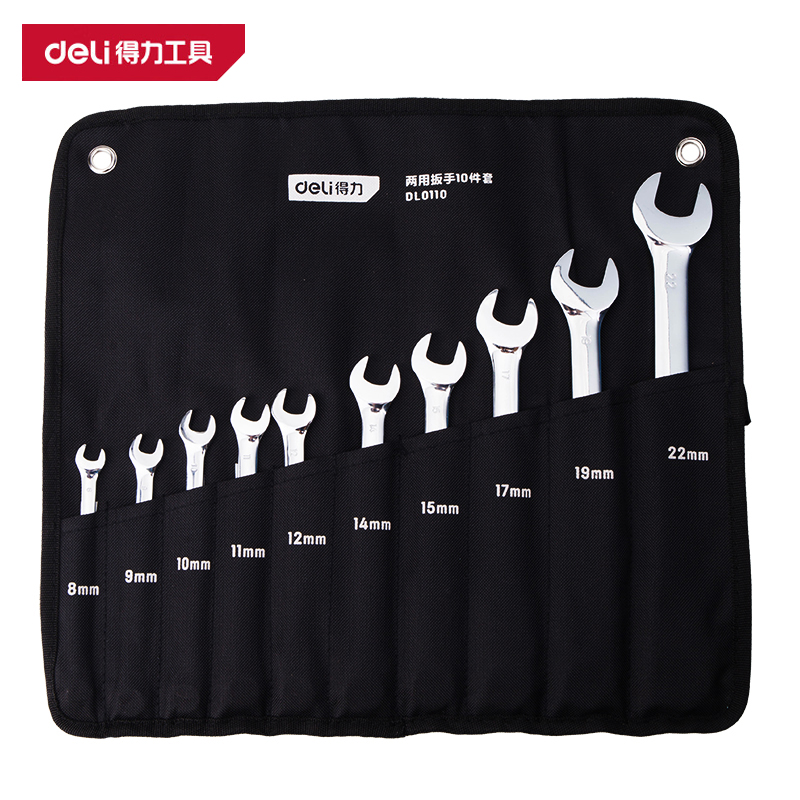 得力 镜面两用扳手套装 DL0110 银色 8-22mm 10件 1套