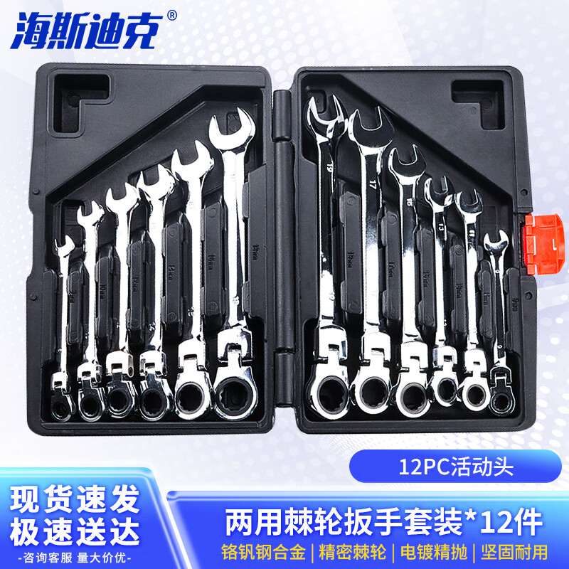海斯迪克 两用棘轮扳手套装 gny-309 铬钒钢 电镀抛光 12PC活动头 12件 1套