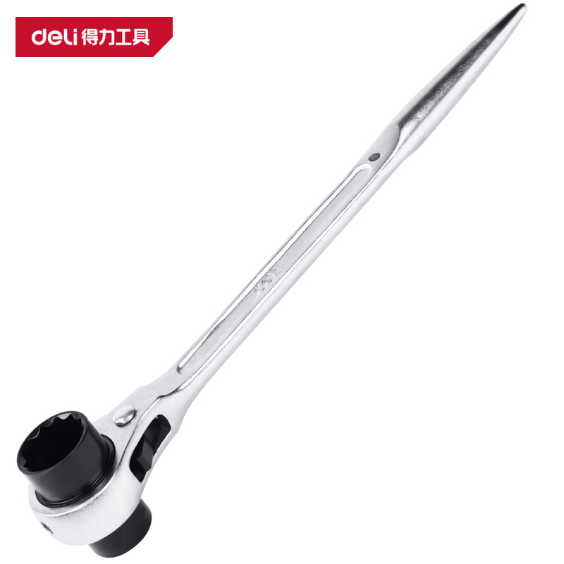得力 镜面两用棘轮快扳 DL34116 银色 16mm 镀铬 1把