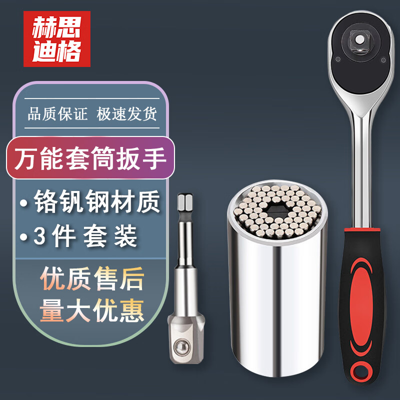 海斯迪克 万能套筒扳手 gnjz-739 铬钒钢 3件套(套筒+电钻接杆+棘轮扳手) 1套