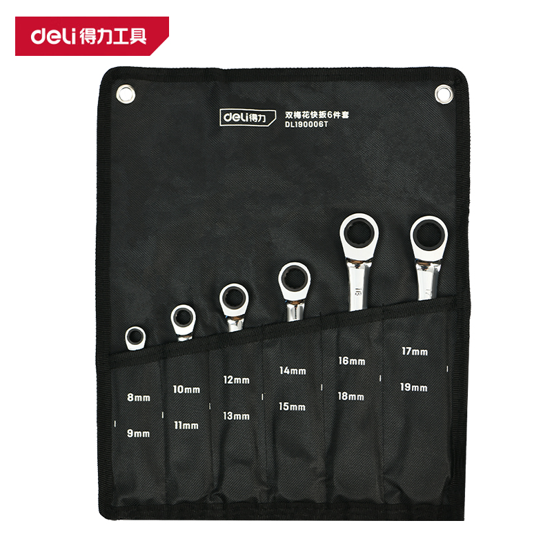得力 双梅花快扳套装 DL190006T 银色 6件 1套
