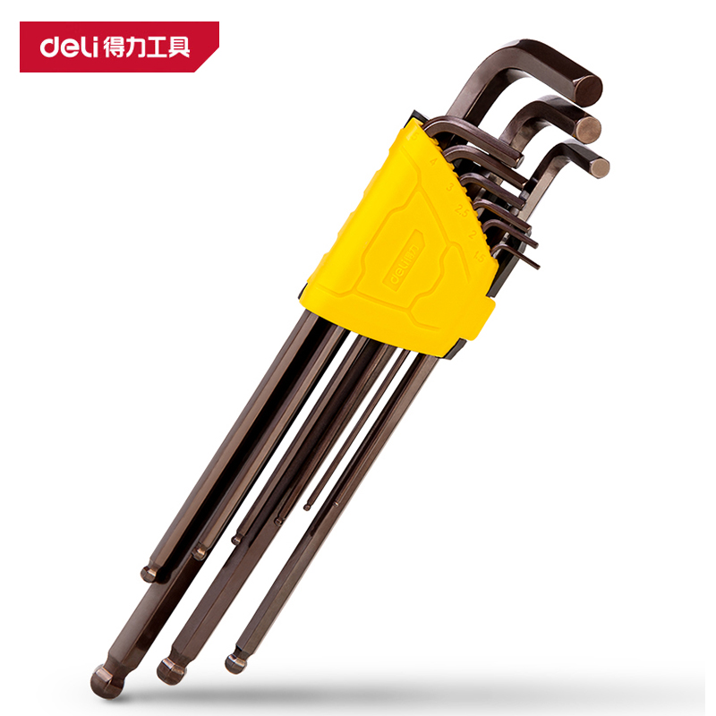得力 工业级古铜色特长球头内六角扳手 DL230809 红色 9件 1套