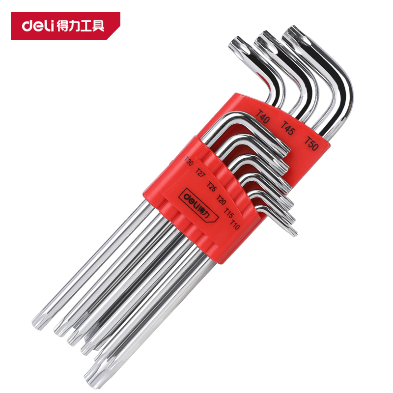 得力 工业级镜面加长花型内六角扳手 DL233609G 红色 9件套 1套