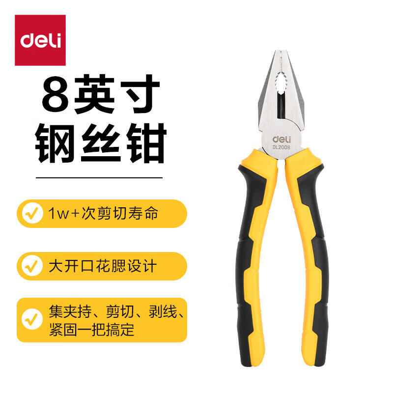得力 德式钢丝钳 DL2008 黄色 碳钢 8寸 1把