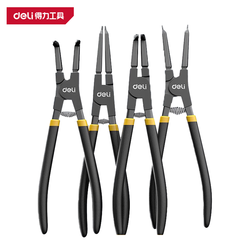 得力 日式卡簧钳四件套 DL104407 黑色 铬钒钢 7寸 4把 1套
