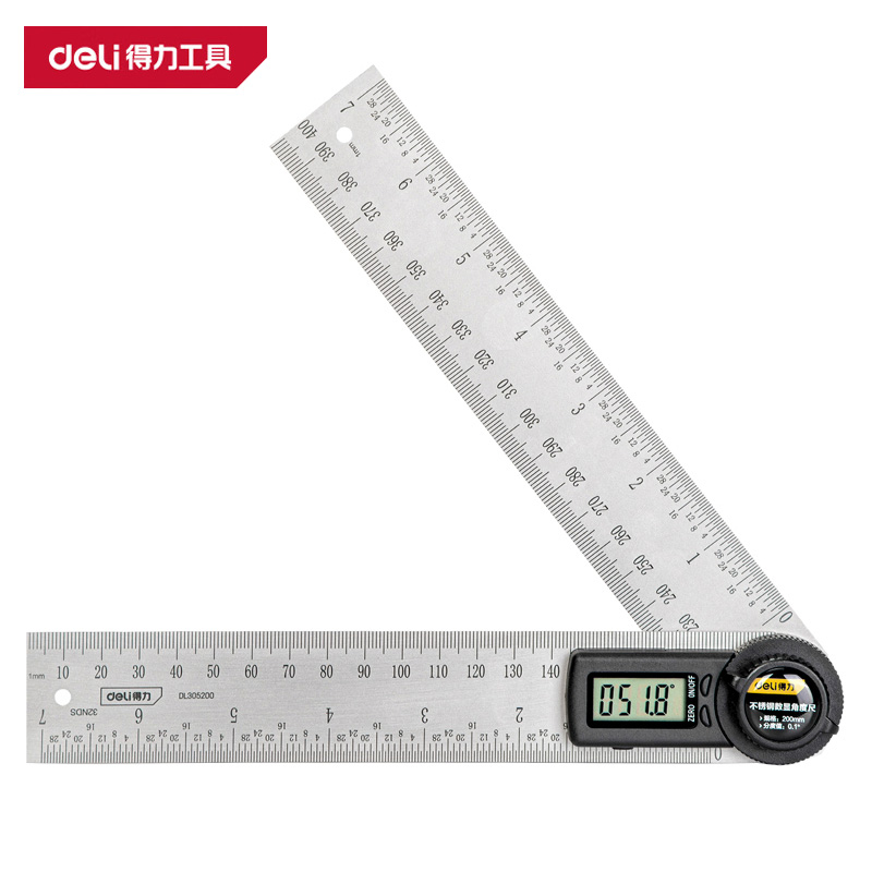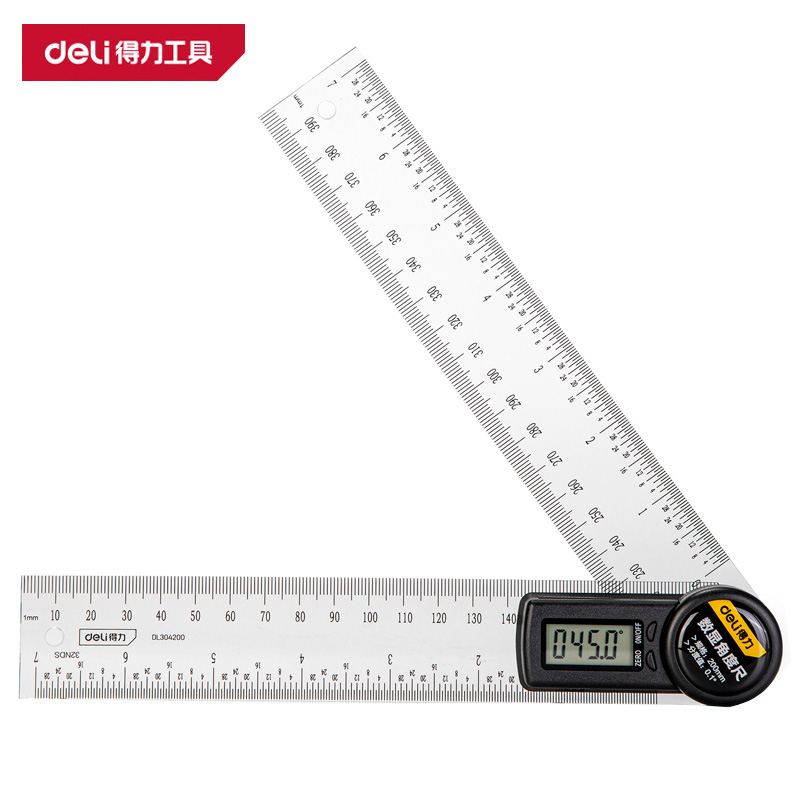 得力 数显角度尺 DL305200 黑色 不锈钢 200mm 1把