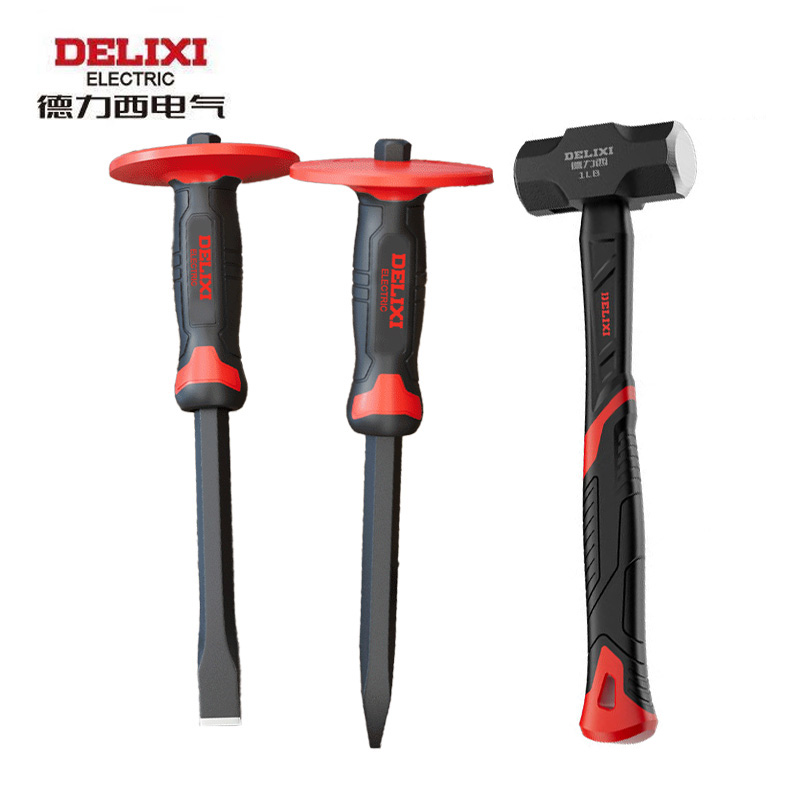 德力西电气 铬钒钢尖头石工凿 12寸扁凿+12寸尖凿+一磅防震八角锤 3把 1套