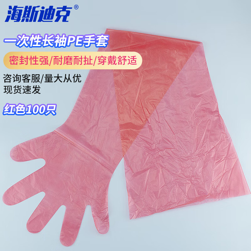 海斯迪克 一次性长袖PE手套 HKsq-7 90*26.6cm LDEP+EVA 红色 100只 1包