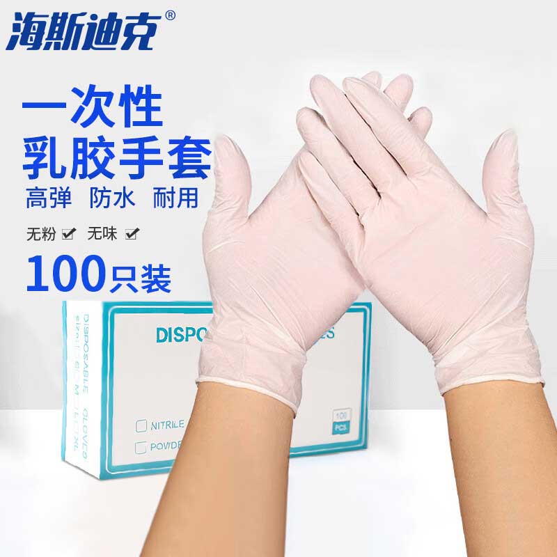 海斯迪克 一次性手套乳白色 KG55-9 乳胶款M码 100只 1盒