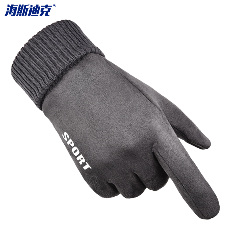 海斯迪克 麂皮绒防寒手套 KG24-3 毛绒内里均码灰色 1双