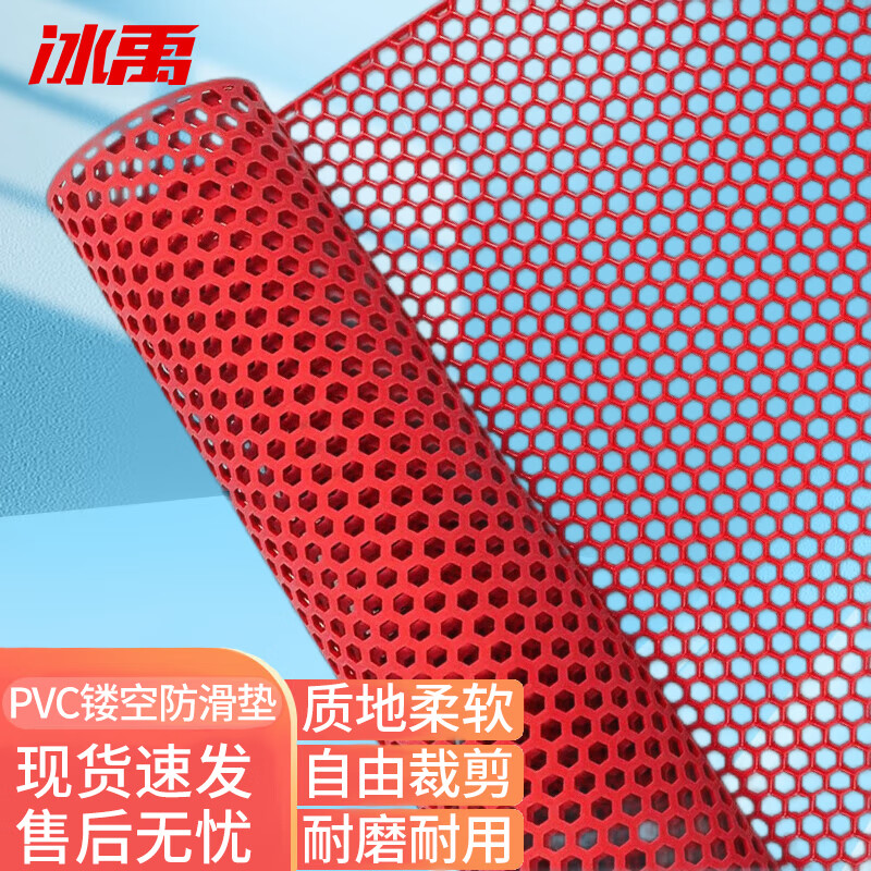 冰禹 六角镂空防滑垫 BYyc-133 PVC 红色 1.2m宽 1米