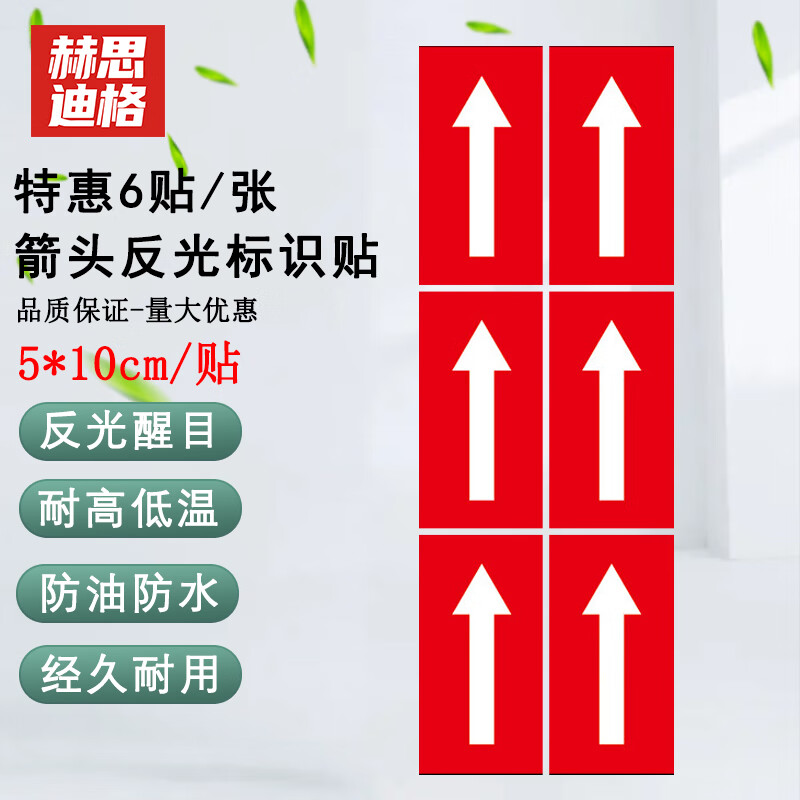 赫思迪格 不干胶箭头反光标识贴 HGJ-598 红白 5*10cm 6贴 1张