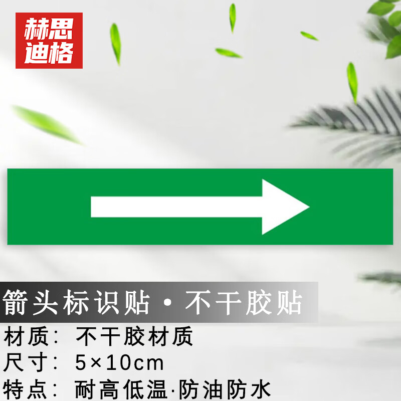 赫思迪格 不干胶箭头标识贴 HGJ-62 绿白 5×10cm 1个
