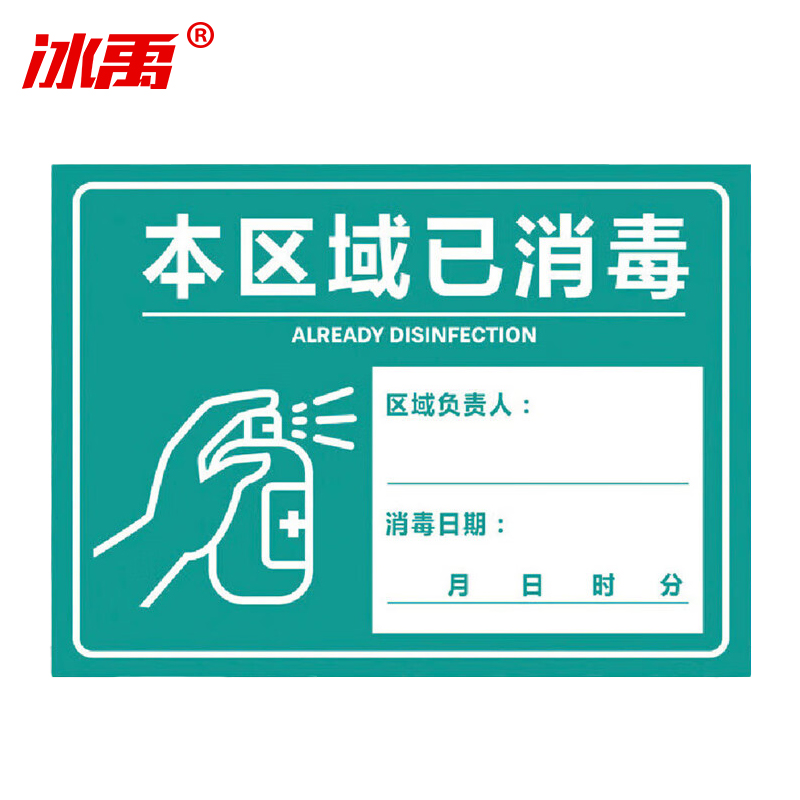 冰禹 餐厅学校食堂医院提示贴 BYly-71 不干胶 30×22cm 本区域已消毒 1张