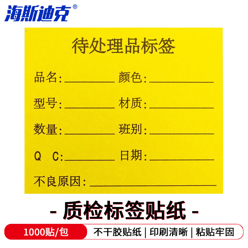 海斯迪克 质检标签 gny-516 待处理品标签 1000贴 1包