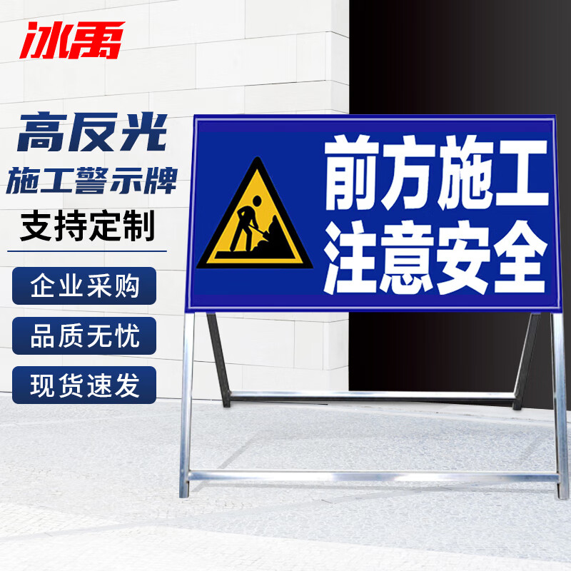 冰禹 前方道路施工警示牌 BYP-379 100*50cm前方施工注意安全 1个