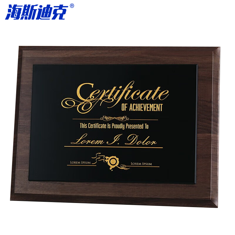 海斯迪克 小号 水晶实木授权牌 KS280-1 胡桃木 20*25cm 1个