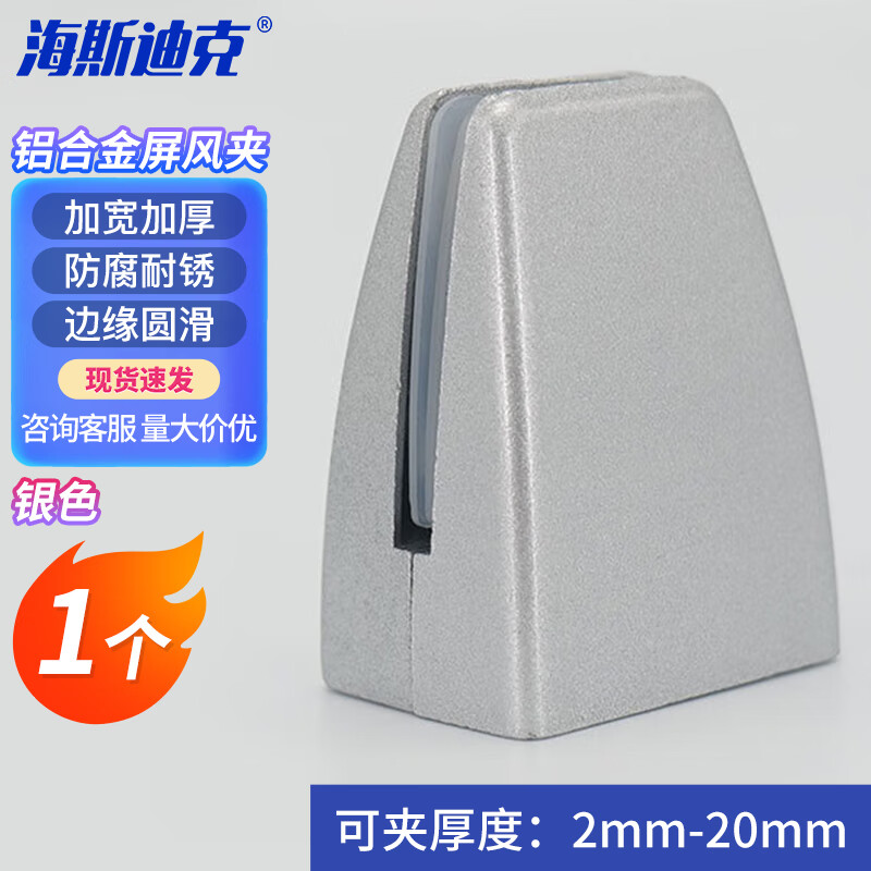海斯迪克 铝合金桌面玻璃固定屏风夹 HKDP-246 银色 43*29*59mm 1个