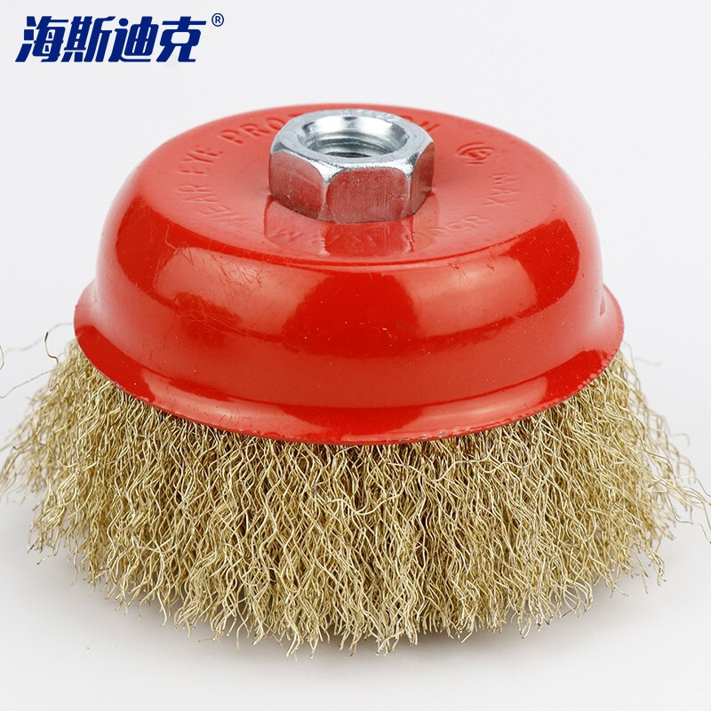 海斯迪克 碗型钢丝刷 HKL-11 镀铜钢丝 2.5寸*M10*1.5(65mm) 1个