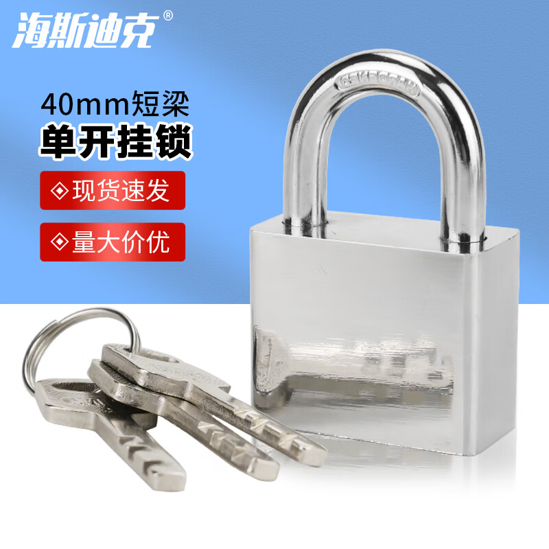 海斯迪克 挂锁 HKA-21 铁镀铬 40mm短梁 1把