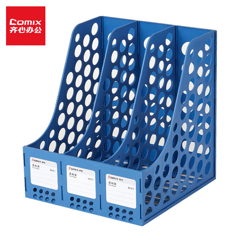 齐心(COMIX) 三联收纳文件框 B2073 蓝色 259*262*291mm 1个