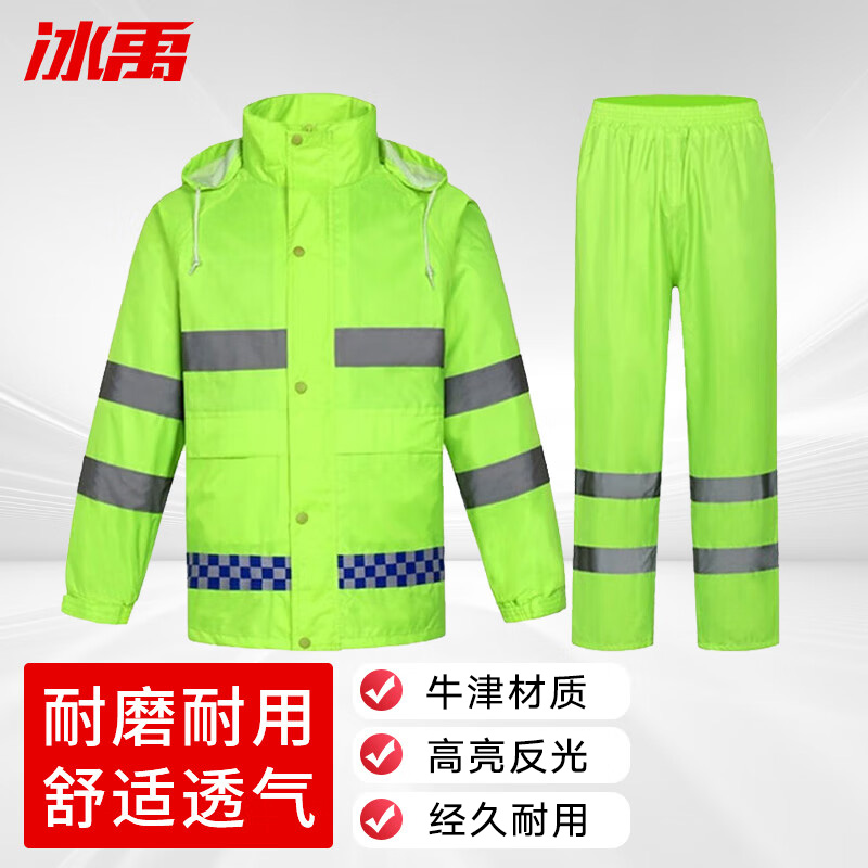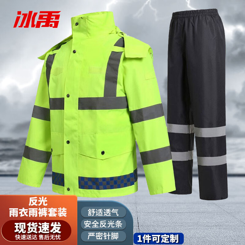 冰禹 反光雨衣雨裤套装 BYC-348 荧光绿 XL 1套