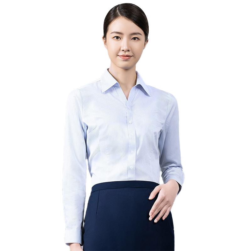 规格:女士-V领-浅蓝条纹 40码