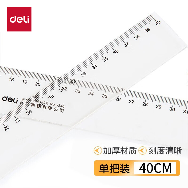 得力 PS塑料直尺 6240 透明 40cm 1把