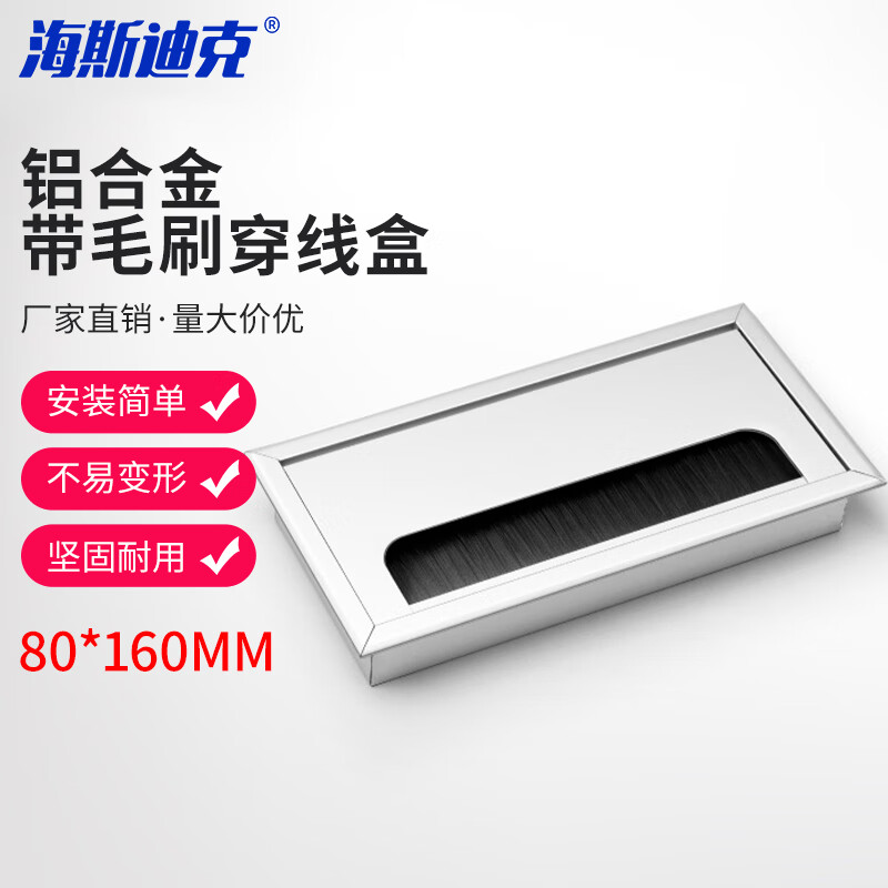 海斯迪克 铝合金带毛刷穿线盒 HKHE-019 8*16cm 1个
