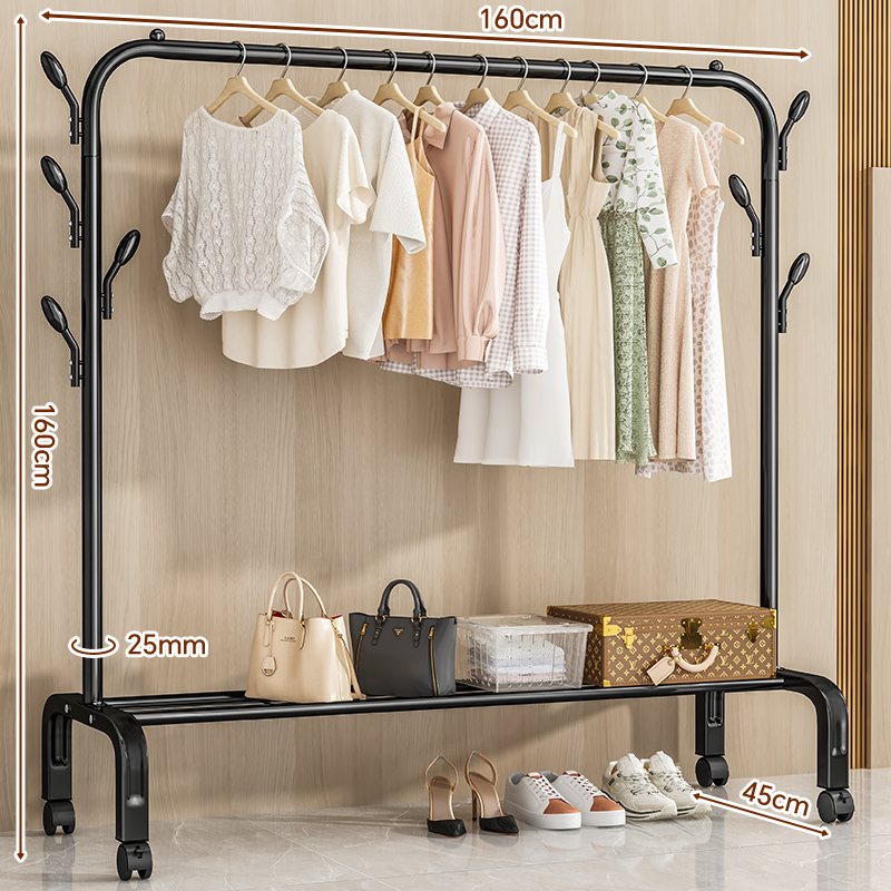 规格:160cm黑7钩+置物网+万向轮