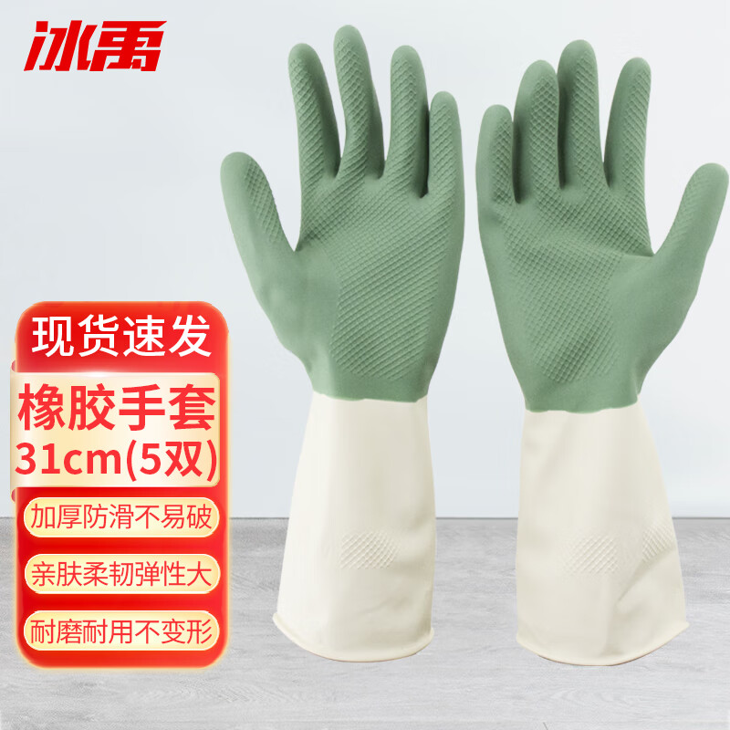 冰禹 胶皮清洁手套 BYQ-926 乳胶 深绿 M 5双 1包