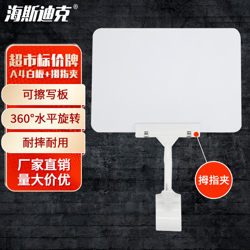 海斯迪克 pop标价牌 gny-525 A4白板+拇指夹 1套