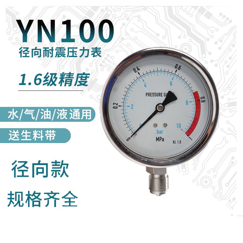 规格:一般压力表 Y-100 0~1.6 径向