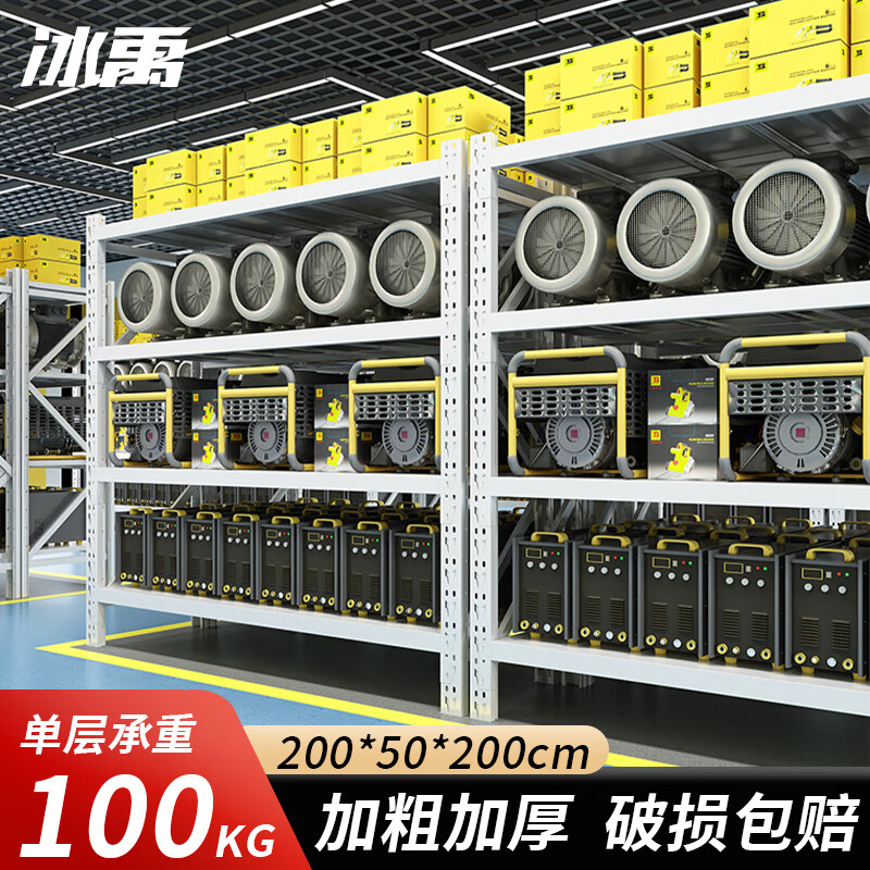 冰禹 仓储货架 BY-665 铁 白色 主架4层 轻型 200*50*200 1个