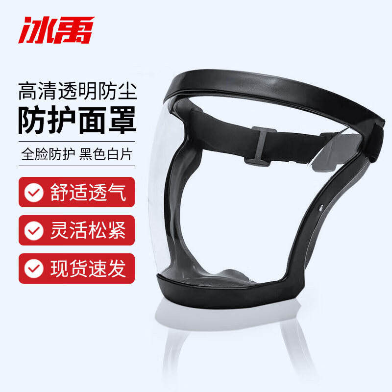 冰禹 全脸防护面罩 BYA-547 PC+橡胶 黑色白片 1个