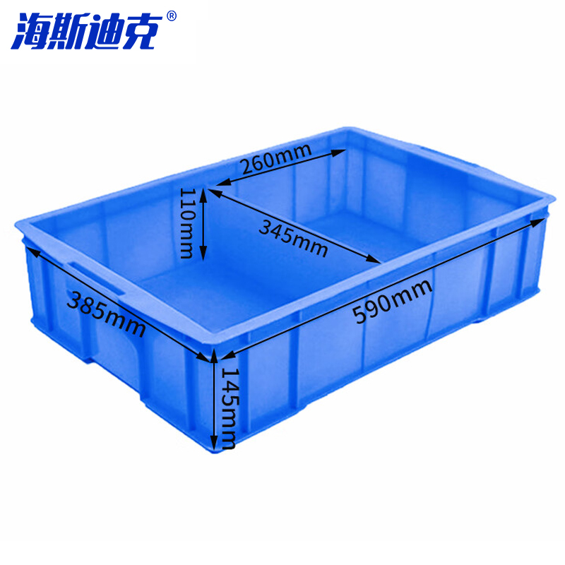 海斯迪克 分格周转箱 KC4-2 塑料 蓝色 二格箱外 590*385*145mm 1个