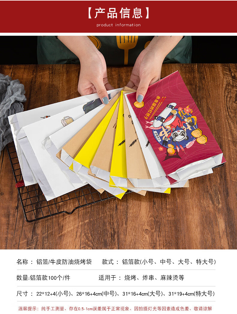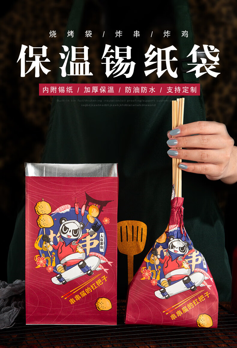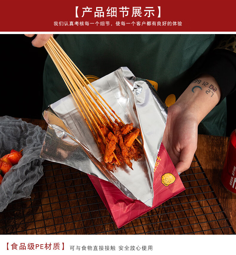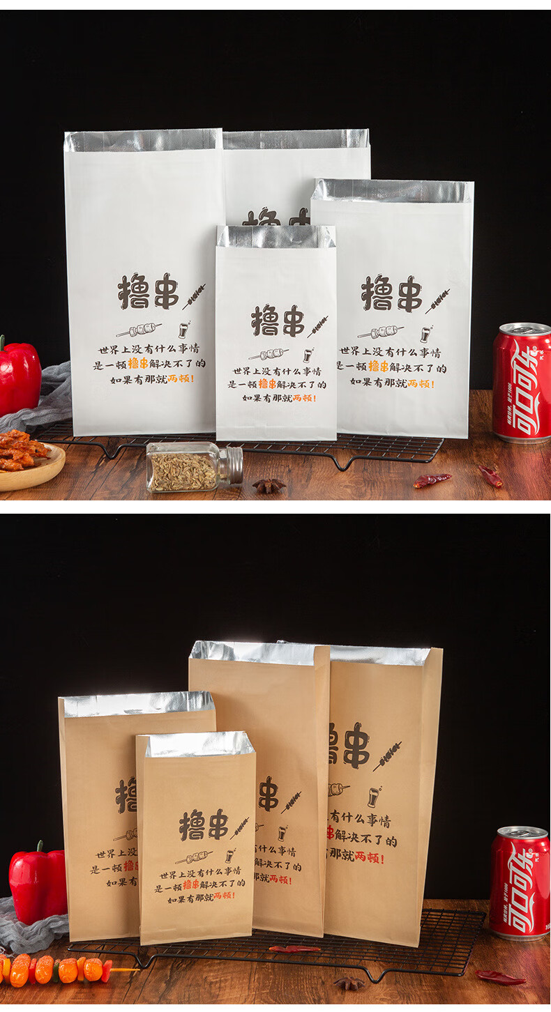 海斯迪克 打包袋锡纸袋 HKL-1174 来撸串(22*12+4) 100个 1件
