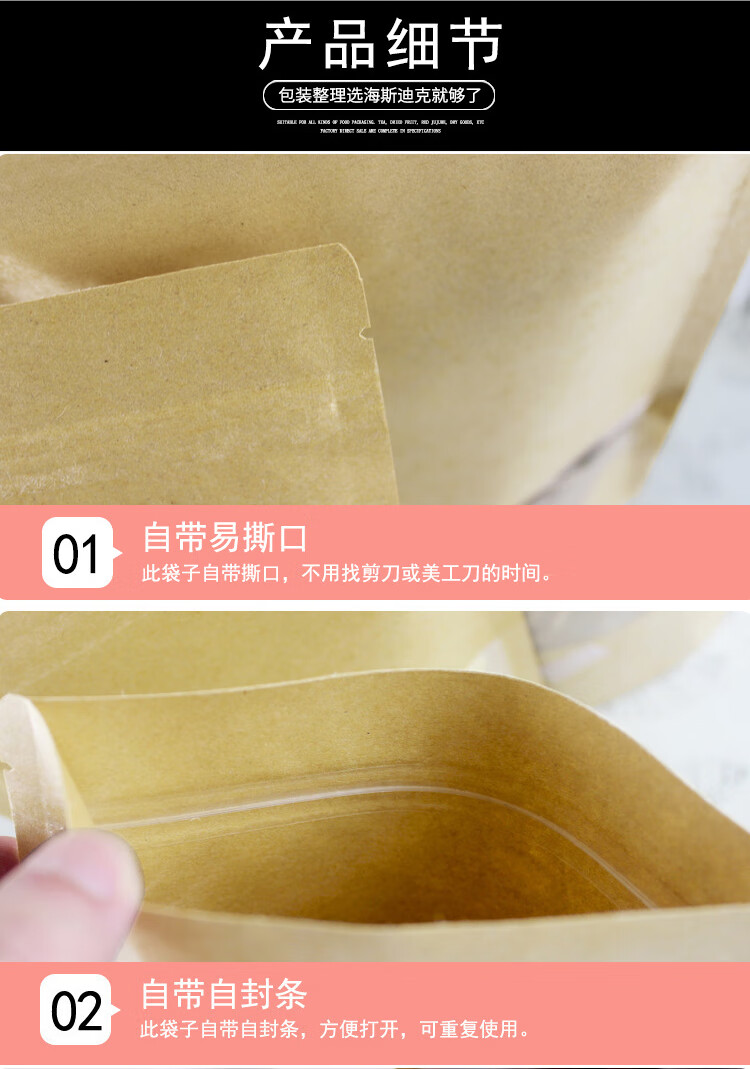 海斯迪克 食品纸袋 HKZ-139 12*20+4高清 50个 1件