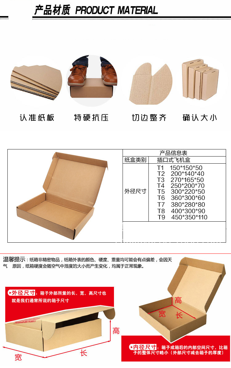 海斯迪克 飞机盒包装盒 H-143 3层加硬kk 360*300*60mm 1个