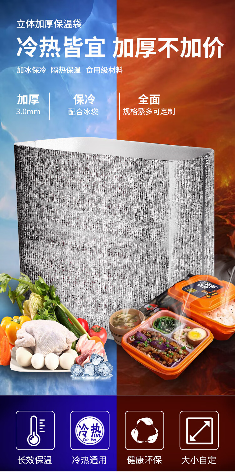 首页>包装及胶带>包装工具及耗材>包装袋系列>铝箔袋>海斯迪克 一次性立体式铝箔保温袋