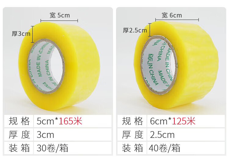 海斯迪克 透明胶带 HKQS-201 5cm宽*125m长(厚2.5cm) 40卷 1箱