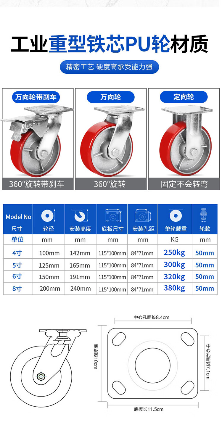 首页>搬运存储>>工业脚轮及车轮>脚轮>海斯迪克 重型PU脚轮