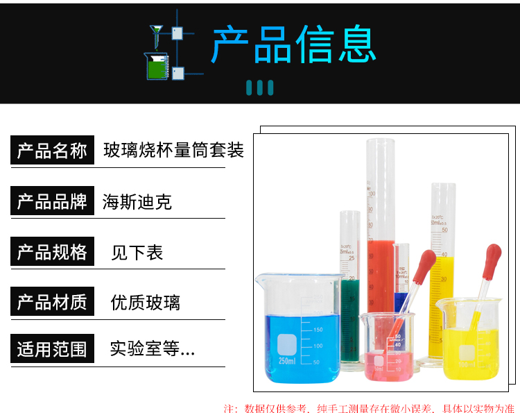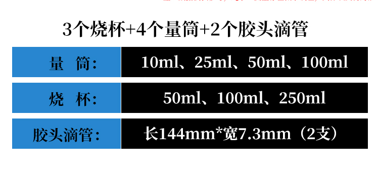 海斯迪克 加厚化学实验器材套装 HKCL-192 3个烧杯+4个量筒+2个胶头滴管 9个 1套