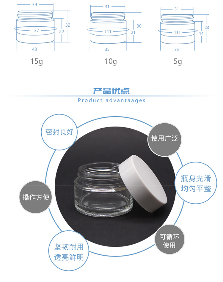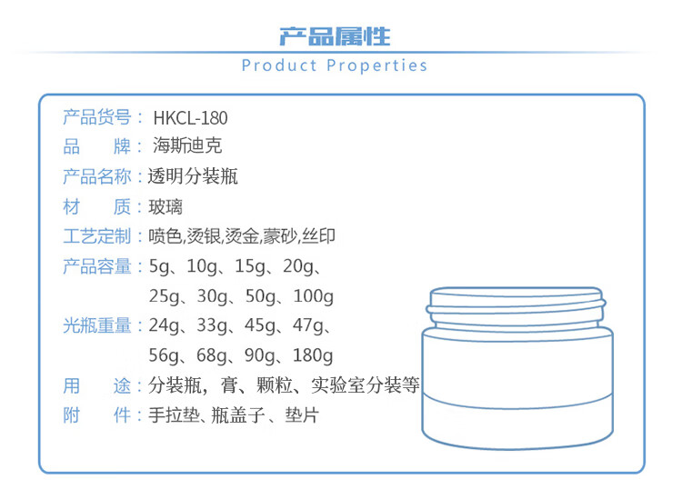 海斯迪克 实验室透明玻璃面霜药膏面膜瓶 HKCL-180 30g 1个