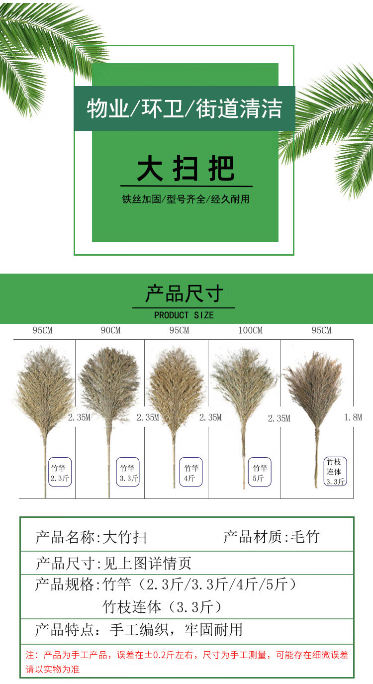 海斯迪克 竹扫把 HZL-121 2.3斤 1把