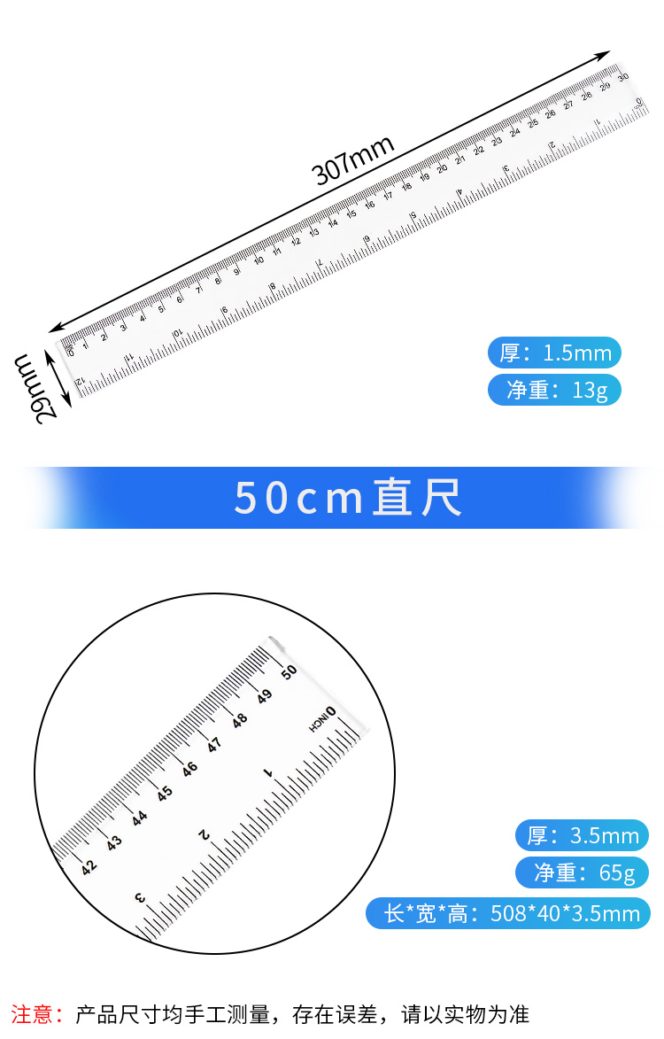 海斯迪克 塑料直尺 HKCL-344 50cm 5把 1包