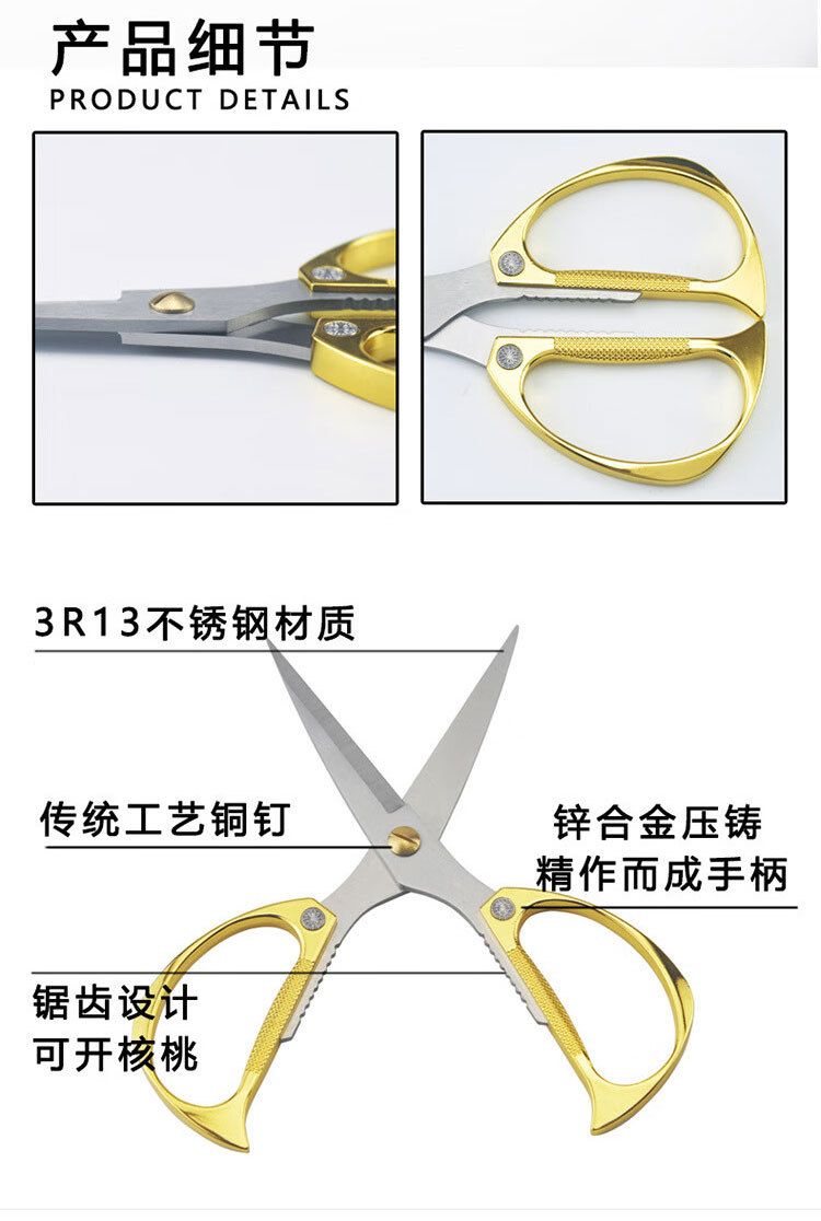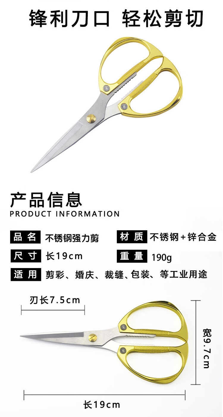 海斯迪克 不锈钢合金剪刀 HKCL-384 金色手柄 1个