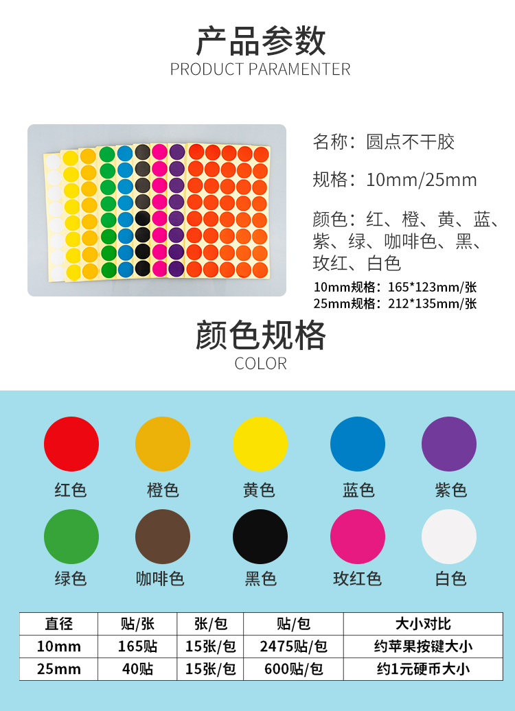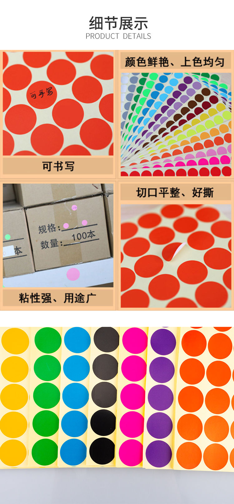 • 商品名称:海斯迪克 彩色不干胶圆点标签贴纸